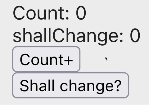 If you click Count+ multiple times, the count will only increase once. It will increase again after you click Shall Change? butotn.